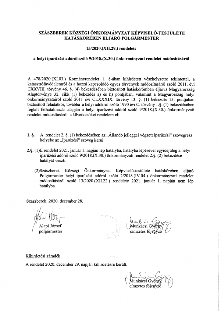 9/2018. (X.30) számú önkormányzati rendelet A helyi iparűzési adóról